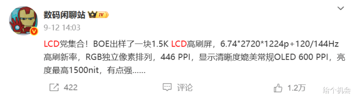 这款LCD屏手机的综合性还不错,最近刚刚上市可能没啥热度,不过对LCD屏爱好者来说确实值得看看,12G+256G起售价1399元,同版本的价格比iqoo z10x稍微贵两百元左右,可以在这两款手机之间进行抉择,当然要是愿意等的话,明年应该会有好一点的LCD屏手机出现,据博主数码闲聊站此前爆料,京东方出了一块1.5k高清LCD高刷屏,估计到明年就会适配。